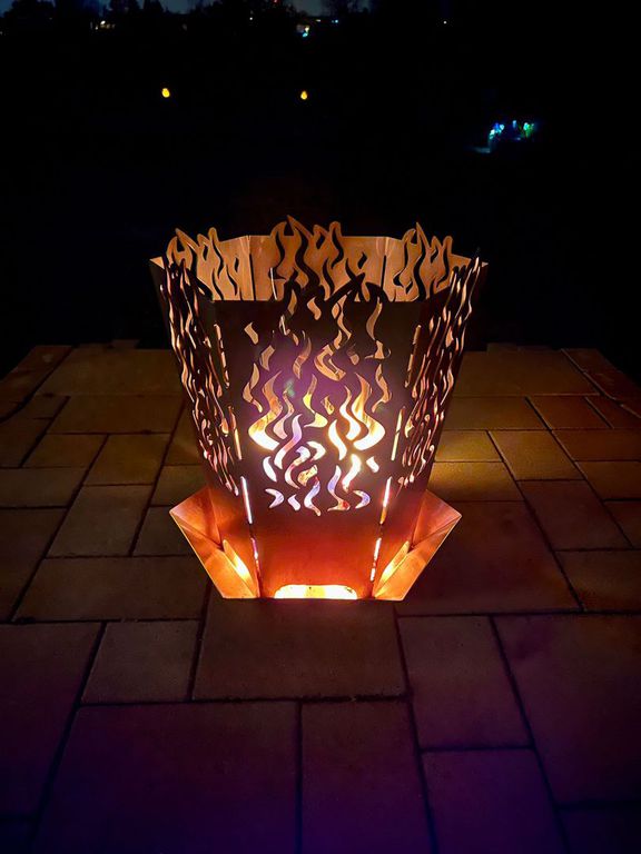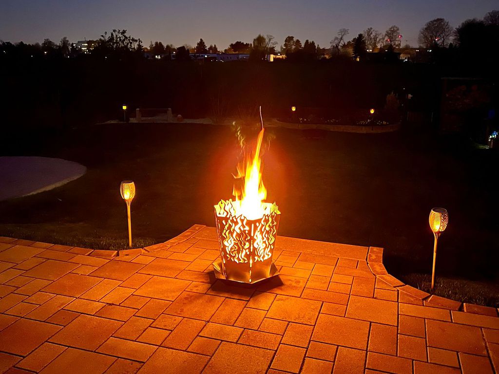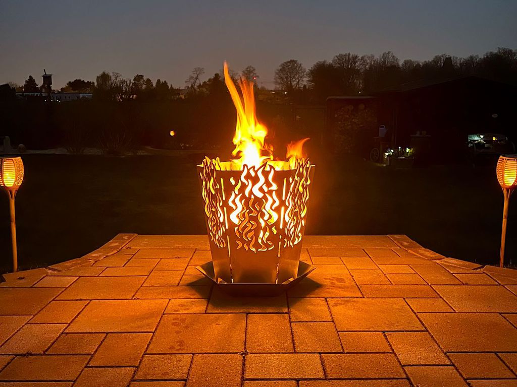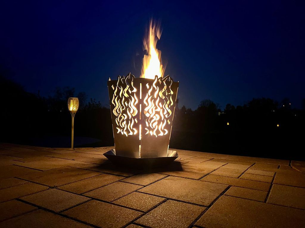 Der aus 3mm gefertigte Feuerkorb mit Unterschale beeindruckt mit seiner modernen sechseckigen Form und dem Flammenmuster. Die absolut hochwertige Verarbeitung und das exklusive Design machen den Feuerkorb ideal für gemütliche Abende auf der Terasse. Fazit: Stilvoll, sehr edel, ein optisches Highlight in jedem Garten. Perfekte Kaufabwicklung. Würde ich sofort wieder kaufen.